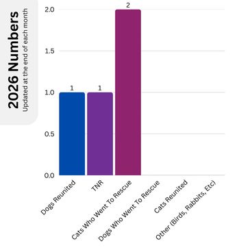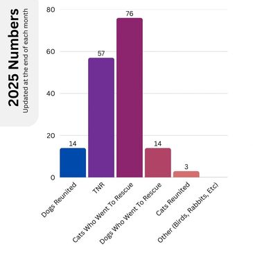 Nearly 63% of animals helped in 2025 were from the Whitewater area. We also gained 6 new volunteers this year, which helped increase the amount of animals Journey Home could assist!